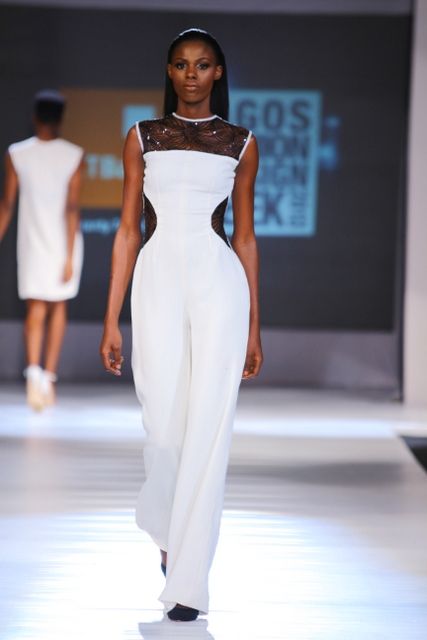 Showcased at the GTBank Lagos Fashion & Design Week 2013, the collection was tagged the Elementsand it consists of beautifully crafted dresses, jumpsuits with sheer fabric cut outs, shift dresses with sheer hounds tooth detail fabrics and of course that signature embroidered Iconic Invanity bodace.